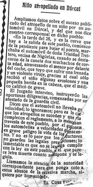 1 de enero de 1926. Un niño atropellado por un coche de una