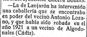 20 de enero de 1926. Intervenida una caballería en Lanjarón
