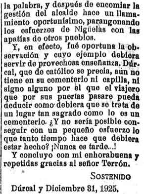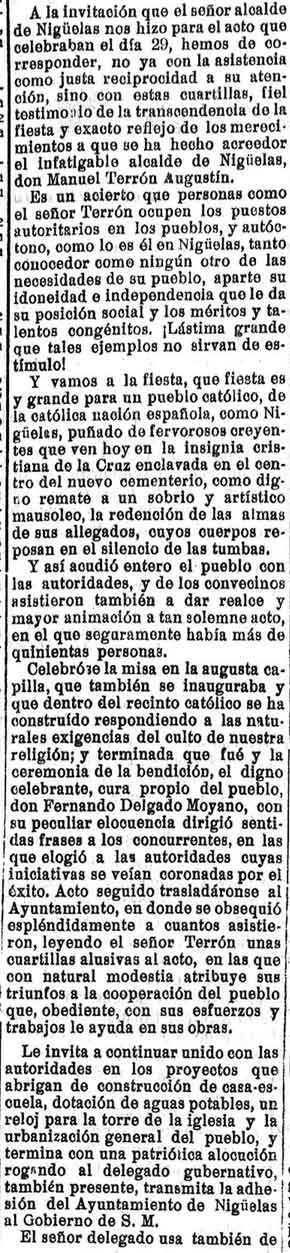 inaugura el cementerio de Nigüelas por el alcalde Manuel Terrón Augustín