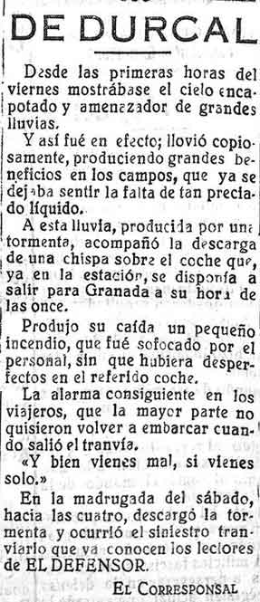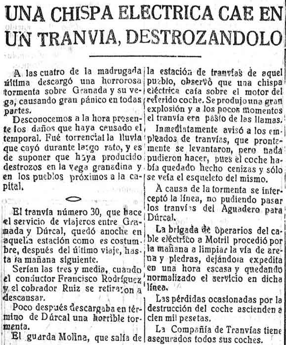 11 de octubre de 1926. El tranvía destruido en Dúrcal