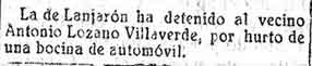 15 de octubre de 1926. Detención en Lanjarón por robar una