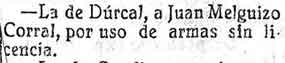 22 de octubre de 1926. Detención en Dúrcal por usar armas sin