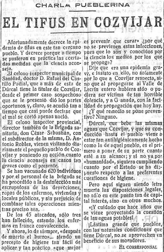 29 de octubre de 1926. El tifus en Cozvíjar