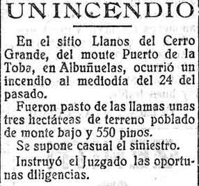 5 de octubre de 1926. Incendio en El Puerto de la Toba de