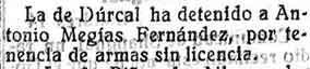15 de marzo de 1927. Detención en Dúrcal por llevar armas sin