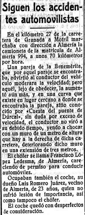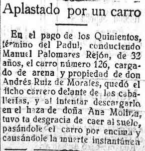 17 de marzo de 1927. Aplastado por un carro en el Padul