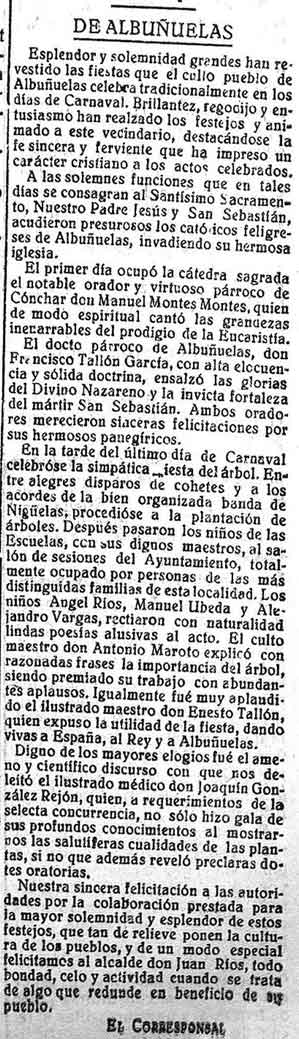 19 de marzo de 1927. Fiestas y carnaval en Albuñuelas