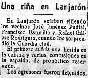 22 de marzo de 1927. Riña en Lanjarón