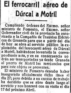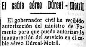 27 de marzo de 1927. Se autoriza al cable Dúrcal-Motril a que