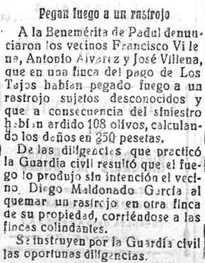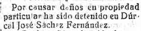 11 de agosto de 1928. Detención en Dúrcal por causar daños