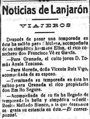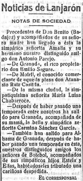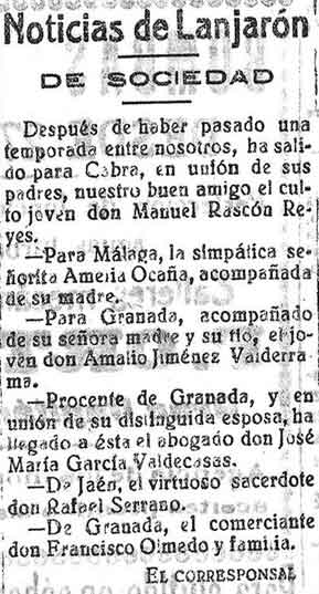 22 de agosto de 1928. Noticias de Lanjarón: Veraneantes