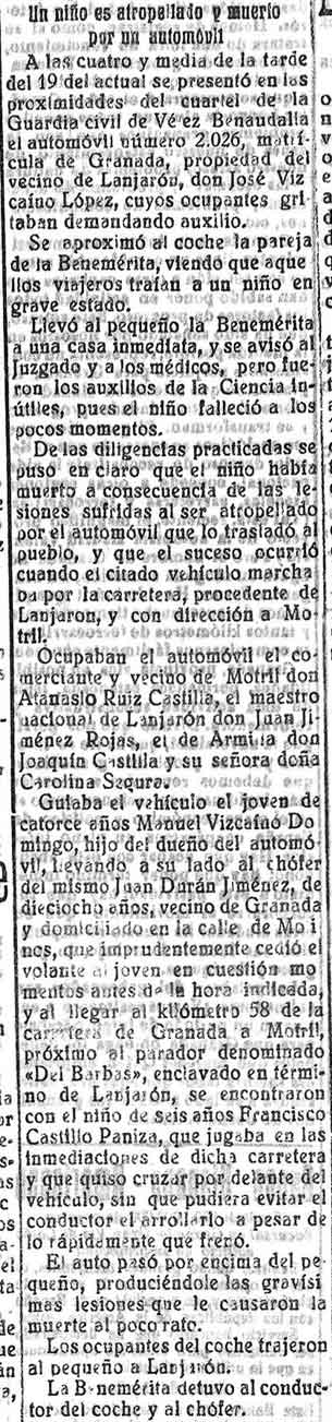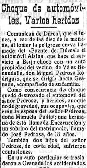 7 de agosto de 1928. Noticias de Lanjarón: Choque de