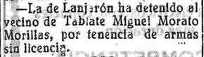 29 de agosto de 1928. Detención de un vecino de Tablate por