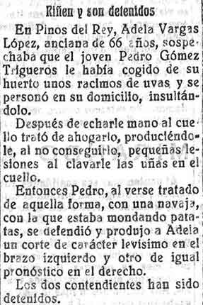 31 de agosto de 1928. Riñen en Pinos del Rey y son detenidos