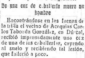 9 de agosto de 1928. Un vecino de Acequias recibe una coz