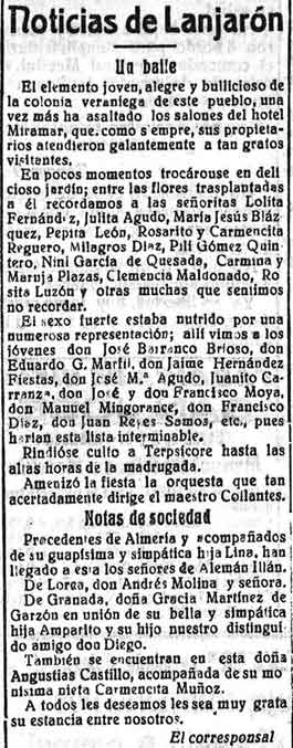 31 de julio de 1928. Noticias de Lanjarón. Veraneantes