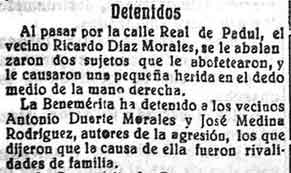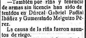 6 de julio de 1928. Detenciones por riña en Dúrcal