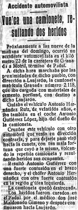 cemento hasta Lanjarón, en Padul, resultando dos heridos