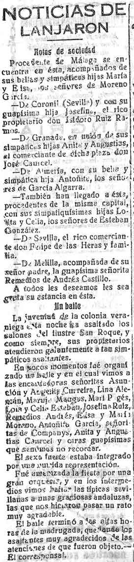 24 de julio de 1928. Noticias de Lanjarón: Baile en los