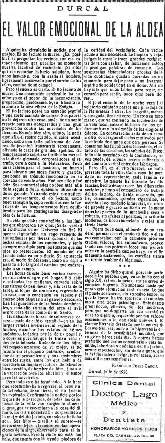 31 de julio de 1928. Dúrcal. El valor emocional de la aldea.