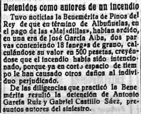 3 de julio de 1928. Detenidos en Pinos del Valle acusados de