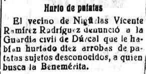 12 de mayo de 1929. Roban 10 arrobas de patatas en Nigüelas
