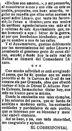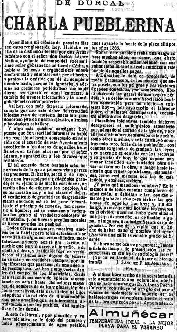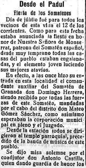 25 de mayo de 1929. Desde Dúrcal se menciona al comandante