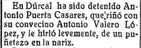 1 de mayo de 1929. Detención en Dúrcal por una riña