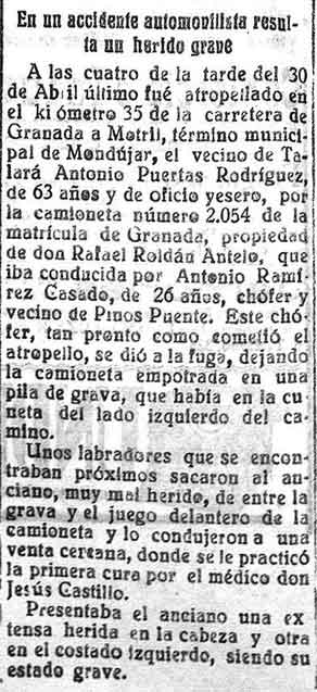 3 de mayo de 1929. Un anciano de Talará es atropellado por