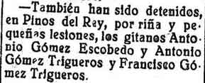 7 de mayo de 1929. Detenidos en Pinos del Rey por una riña