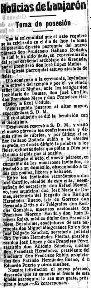 9 de mayo de 1929. Toma de posesión el nuevo párroco de