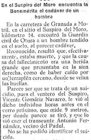 19 de febrero de 1930. Se suicida un individuo en el Suspiro