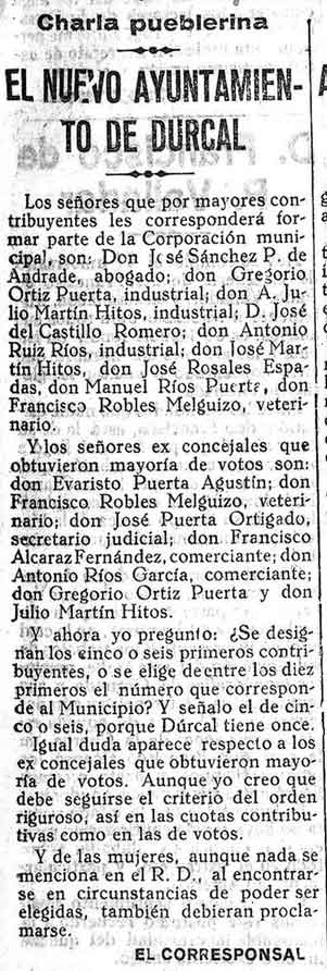 22 de febrero de 1930. Los mayores contribuyentes de Dúrcal