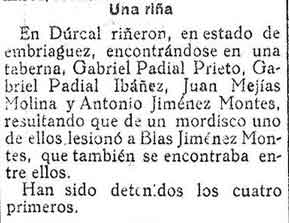5 de febrero de 1930. Riña en Dúrcal