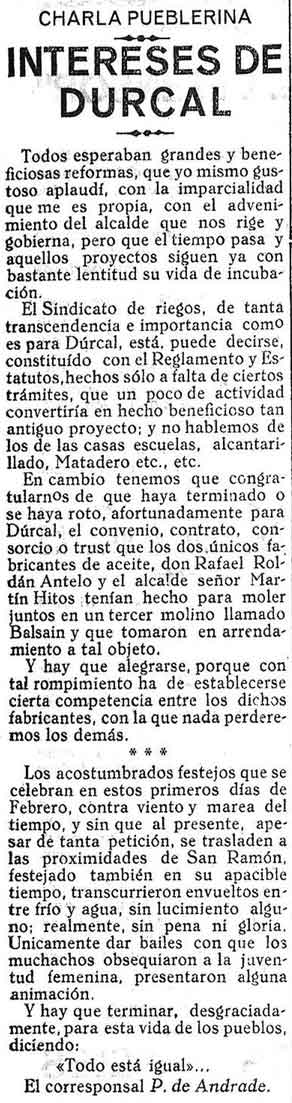 7 de febrero de 1930. Los dos fabricantes de aceite de Dúrcal
