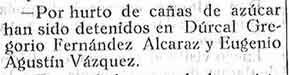 13 de mayo de 1930. Detenido en Dúrcal por robo de caña de