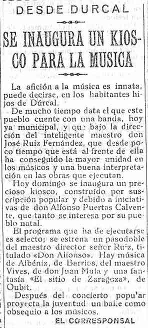 inaugura en la plaza de Dúrcal el kiosco para la música por iniciativa de Don