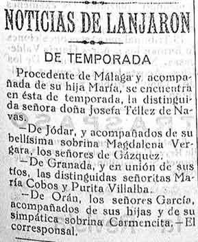 24 de mayo de 1930. Noticias de Lanjarón: Turistas