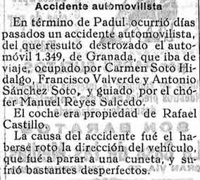 3 de mayo de 1930. Accidente automovilista cerca de Padul