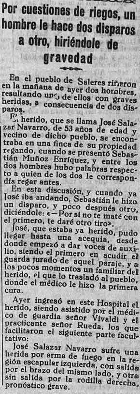 12 de agosto de 1931. Disparos entre dos vecinos de Saleres