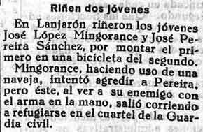 13 de agosto de 1931. Riña por una bicicleta entre dos