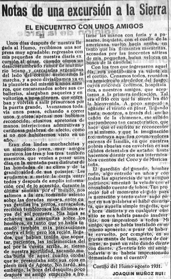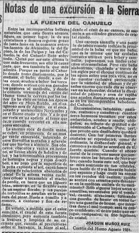 Excursión a la sierra. La fuente del Cañuelo. De Joaquín Muñoz Ruiz