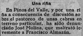 1 de agosto de 1931. Riña en Pinos del Valle