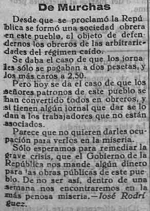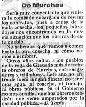 7 de agosto de 1931. Miseria en Murchas al no poder salir a