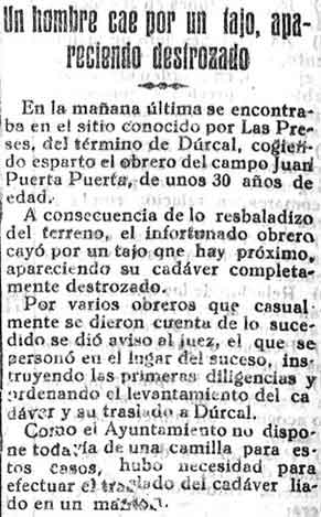 6 de agosto de 1931. En hombre que cogía esparto se cae y