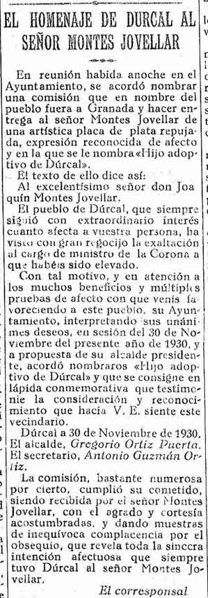 Joaquín Montes Jovellar está por la provincia. El ayuntamiento de Dúrcal le