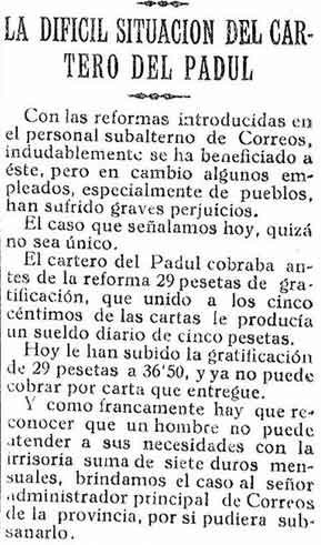 12 de febrero de 1931. Difícil situación del cartero de Padul