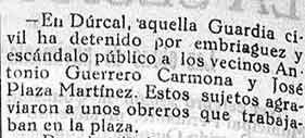 14 de febrero de 1931. Detenidos en Dúrcal por embriaguez