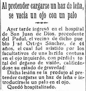 20 de febrero de 1931. Pierde un ojo un vecino de Padul