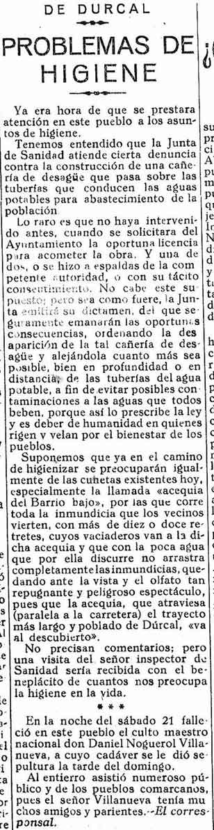 24 de febrero de 1931. Sanidad denuncia una cañería en